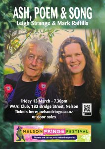 Neil Bonner: Neal Bonner draws from his own deep well of prose poems and holds captive a hushed audience with spoken word and guitar. Originally from the UK and now resident of Golden Bay, Bonner is finding his own voice in words that tell stories against a back drop of some stunning original music. He weaves his words around the steel strings of his guitar and creates a strong and resonate tapestry of word-song that dances to its own tune. His performances are impossible to ignore.
